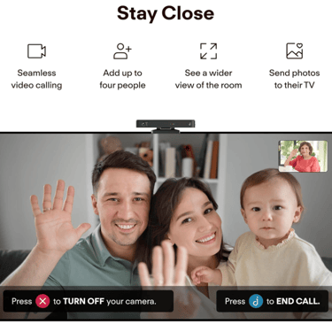 These appear in large, readable text on the TV screen — a simple, loving way to support their independence while staying emotionally connected.